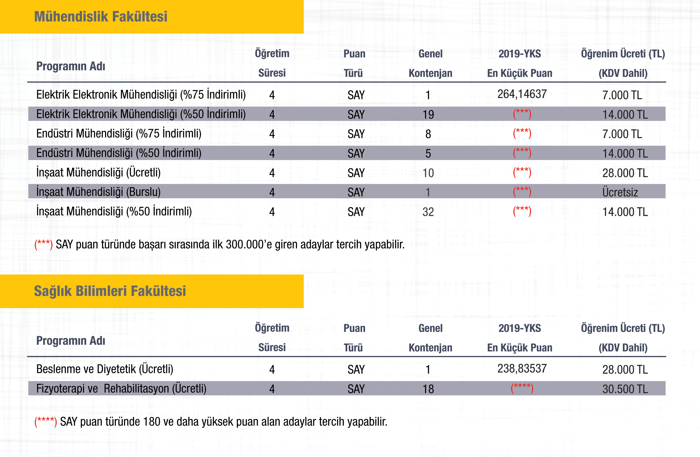 * Üniversitemizde aynı zamanda öğrenim gören kardeşlere beraber öğrenim gördükleri normal öğrenim süresince her yıl her kardeş için %10 öğrenim ücreti indirimi uygulanacaktır.