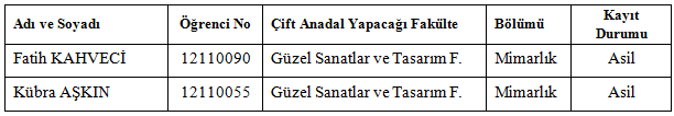 Çift Anadal Yapacak Öğrencinin