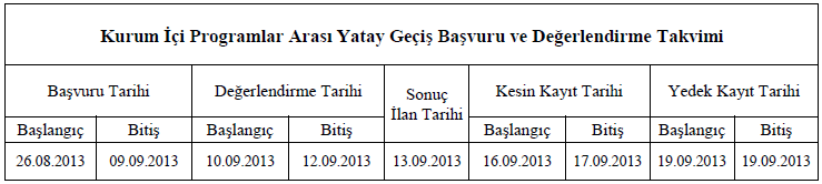 2013-2014 Eğitim-Öğretim yılı Kurum İçi Programlar Arası Yatay Geçiş Başvuru Formu için TIKLAYINIZ.
