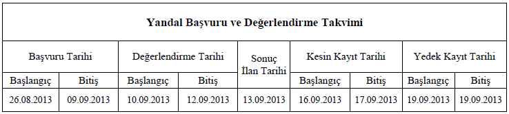 Başvurular, “2013-2014 Eğitim-Öğretim Yılı Güz Yarıyılı Yandal Başvuru Formu” doldurularak, istenen belgelerle birlikte Üniversitemiz Öğrenci İşleri Daire Başkanlığına yukarıda belirtilen tarihlerde yapılacaktır.
