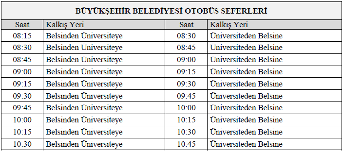 Şehir Merkezi ve Belsin Semtinden Kampüse Direkt Otobüs Seferleri