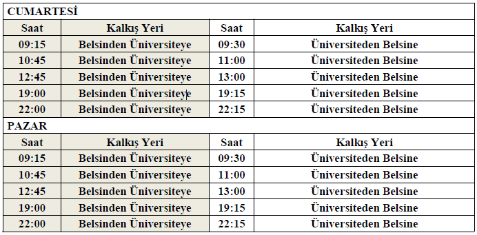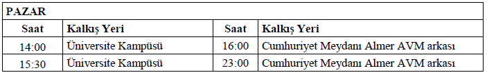 2013-2014 AKADEMİK YILI HAFTA SONU OTOBÜS SEFERLERİ