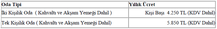2013-2014 Eğitim-Öğretim Yılı İçin Yurt Ücretleri