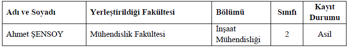 2. Belirtilen kayıt süresi içerisinde kaydını yaptırmayan adaylar kayıt hakkını kaybederler ve herhangi