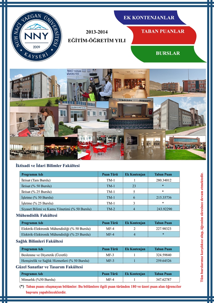 2013-2014 Ek Kontenjan Bölüm ve Taban Puanları