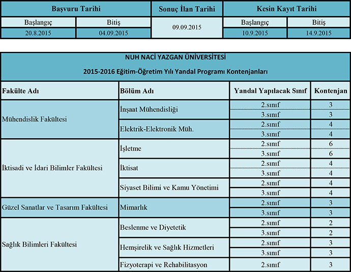 2015-2016 Eğitim-Öğretim Yılı Yandal Programları