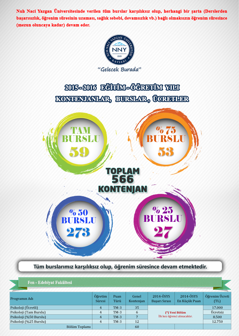 2015-2016 Kontenjanlar, Burslar ve Ücretler