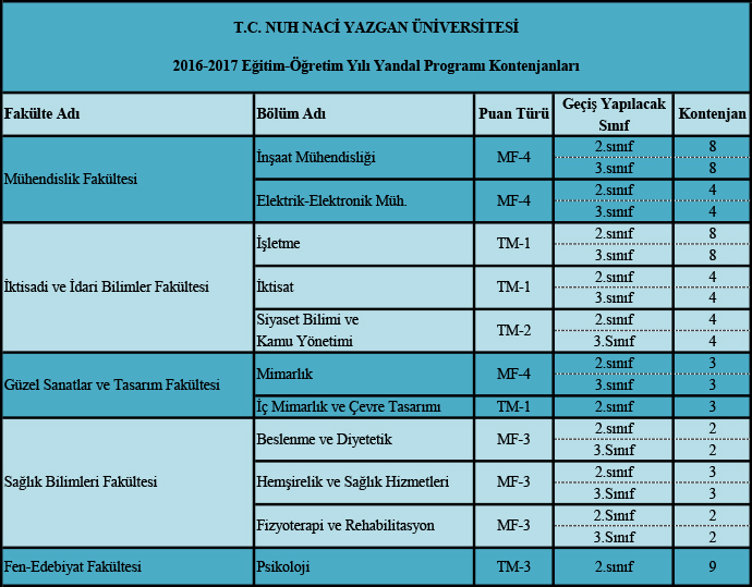 2016-2017 Eğitim-Öğretim Yılı Yandal Programları