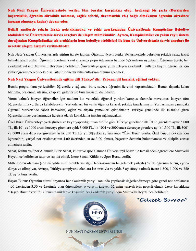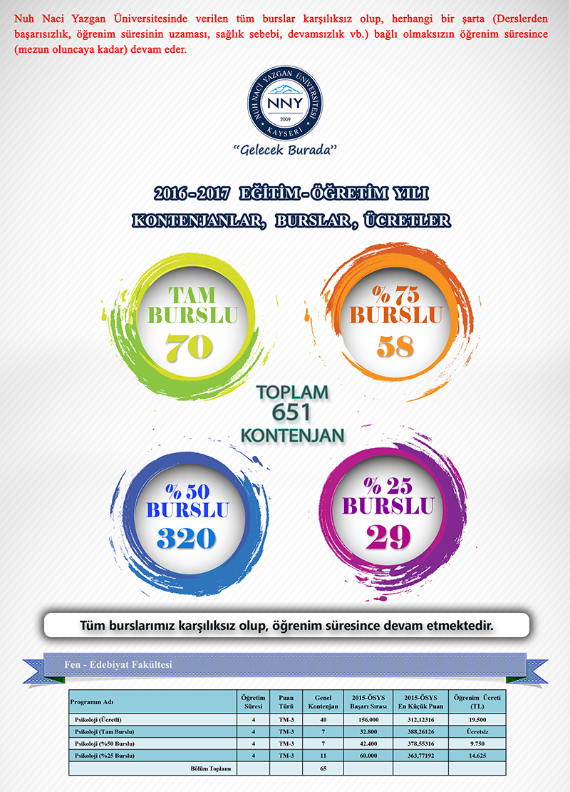 2016-2017 Kontenjanlar, Burslar ve Ücretler