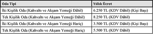 2016-2017 Eğitim-Öğretim Yılı İçin Yurt Ücretleri