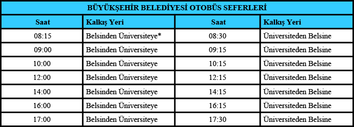 Şehir Merkezi ve Belsin Semtinden Kampüse Direkt Otobüs Seferleri
