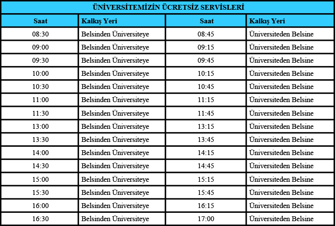 ÜNİVERSİTEMİZ ÜCRETSİZ SERVİSLERİ