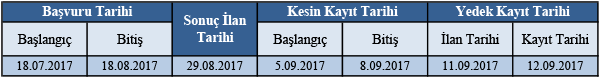 BAŞVURU VE DEĞERLENDİRME TAKVİMİ: