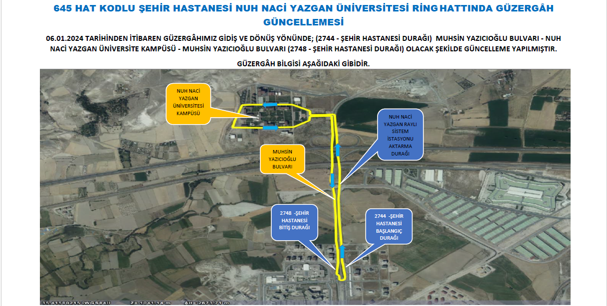 645 Hat Kodlu Şehir Hastanesi Üniversitemiz Ring Hattı Güncellemesi