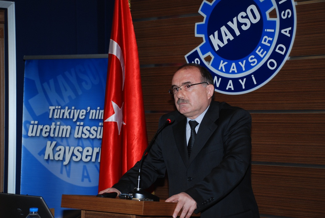 Kayseri Sanayi Odası (KAYSO) konferans salonunda yapılan toplantıya katılan Rektörümüz Prof. Dr. Kerim GÜNEY, Üniversitelerin sadece bilgi aktarılan kurumlar olmadığını, aynı zamanda bilgi üretilen kurumlar olduğunu belirterek, üretilen bilgilerin teknolojiye, toplumsal ve ekonomik faydaya dönüştürülmesinin son derece önemli olduğunu söyledi. Ayrıca Rektörümüz, ülkemizin ve Kayserimizin ekonomik açıdan güçlü olmasının en önemli çözüm yollarından birisinin teknolojik olarak üstün özelliklere sahip, kaliteli, dünya standartlarında ve katma değeri yüksek ürünler üreten bir sanayiye sahip olması ve küresel pazarda yerini almasından geçtiğini belirtti. Ülkemizin kalkınma stratejisinin teknoloji geliştirmeğe, bilgi üretimine ve yenilik yapmağa (inovasyon) dayanması gerektiğini vurgulayarak üniversite-sanayi işbirliğinin etkin ve verimli bir şekilde gerçekleşmesi gerektiğini ifade etti.