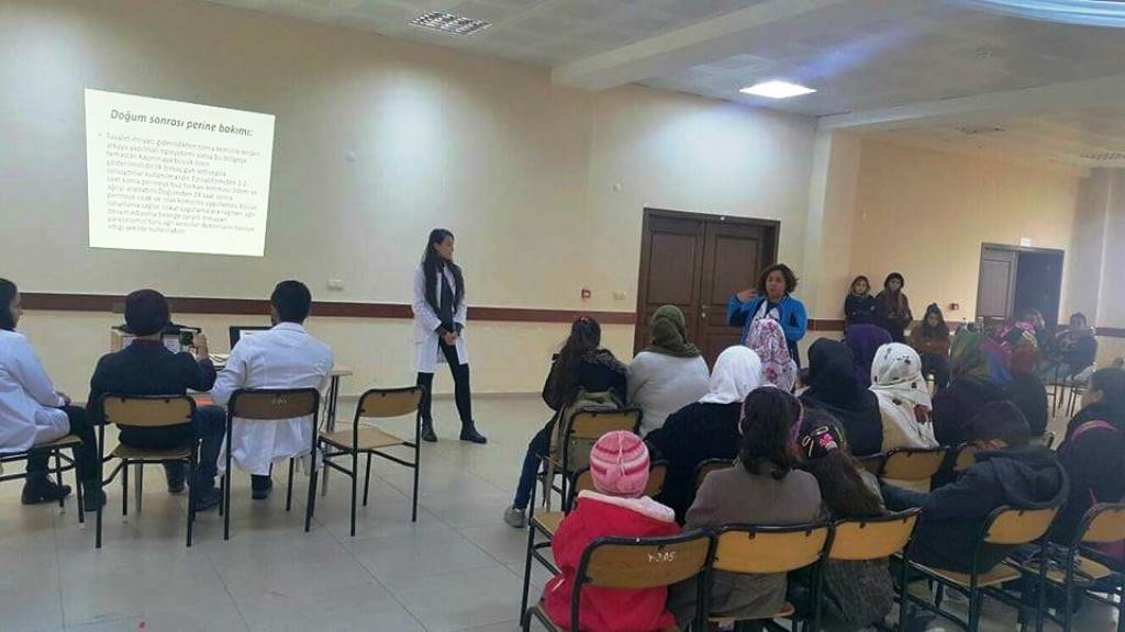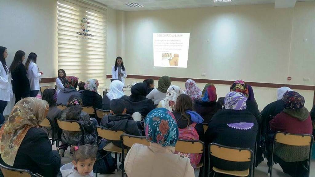 Sağlık Bilimleri Fakültesi Hemşirelik Bölümü Öğretim Üyesi Yrd. Doç. Dr. Zeliha Kaya Erten ile Beslenme ve Diyetetik Bölümü Öğretim Görevlisi Eda Başmısırlı rehberliğinde Bölüm öğrencileri tarafından Kocasinan Belediyesi Boztepe Mahallesi Semt Konağında mahallede yaşayan kadınlara, yeni doğum yapmış annelerin bakımı, yeni doğan bebek bakımı, emzirmenin önemi ve 0-5 yaş çocuk beslenmesi anlatıldı. Eğitim programı sonunda mahallede yaşayan kadın ve çocuklara çeşitli ikramlarda bulunuldu. İsteyen anne ve çocukların hemoglobin değerlerine bakıldı. Ayrıca eğitime katılan annelere bireysel olarak da beslenme konusunda danışmanlık yapıldı. Yine annelerin diyabete ve hipertansiyona yönelik değerlendirmeleri yapılarak, kan şekeri ve kan basınçları düzeyleri ölçüldü. Değerlendirme sonucu risk taşıyan bireylere doktor kontrolü tavsiyesinde bulunuldu.