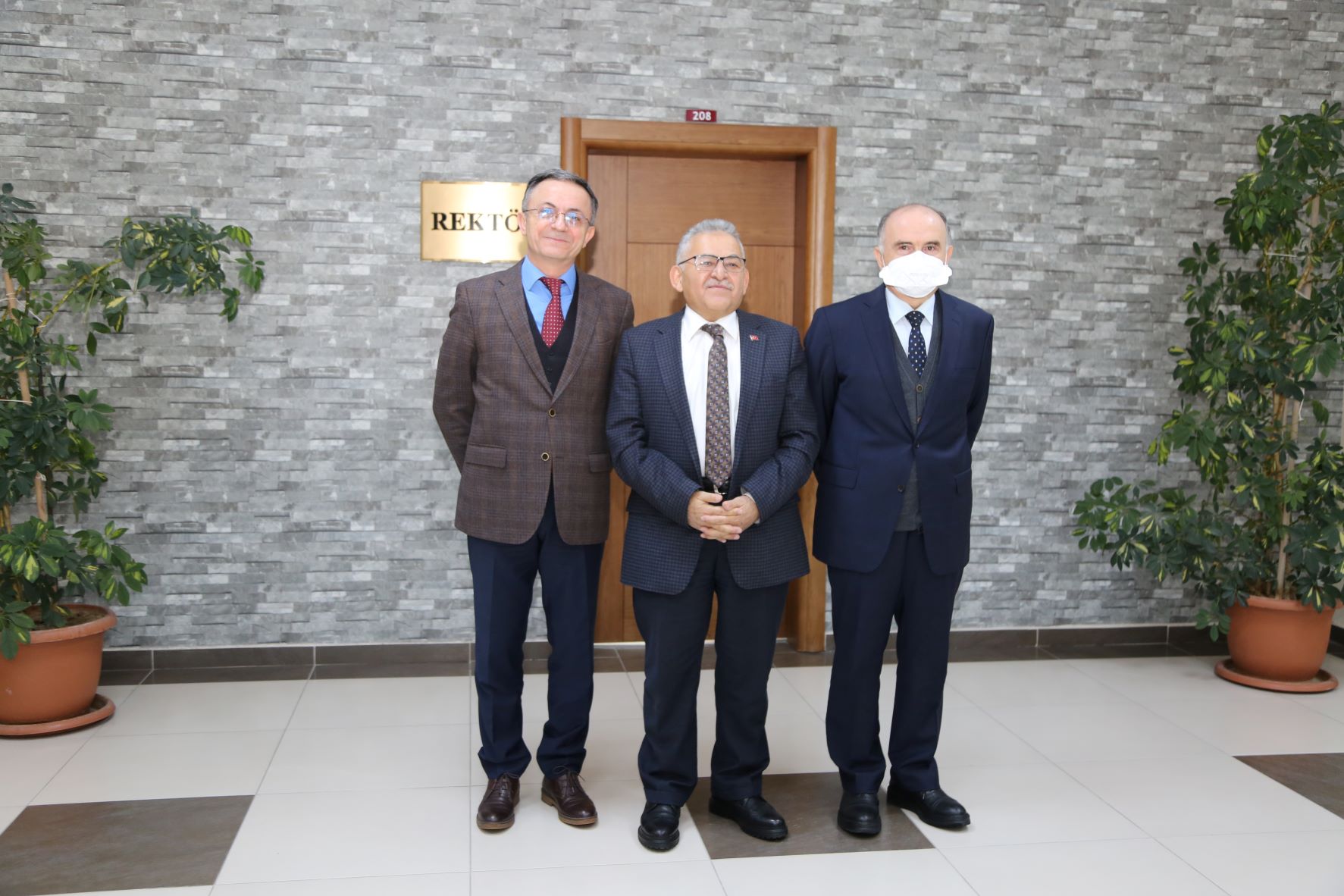Kayseri Büyükşehir Belediye Başkanı Dr. Memduh Büyükkılıç, Üniversitemiz Mütevelli Heyet Başkan Vekili Mahmut Özbıyık ve Rektörümüz Prof. Dr. Kerim Güney tarafından karşılandı.