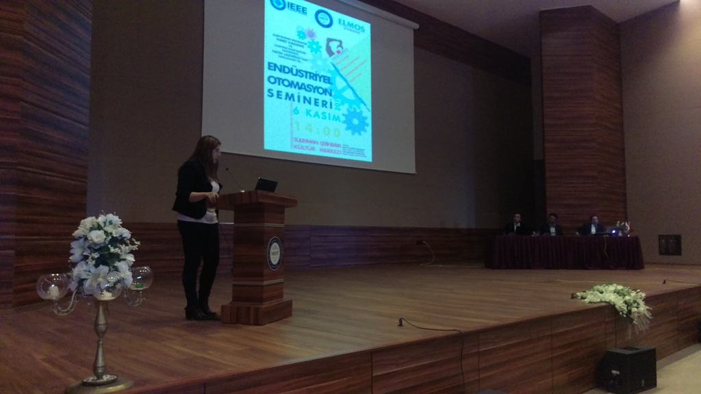 Mühendis adaylarını Endüstriyel Otomasyon ve sektörde bu alanda yapılan faaliyetler hakkında bilgilendirme amaçlı düzenlenen panele ELMOS Otomasyon firma ortağı ve AR-GE Mühendisi Elektrik Müh. İsmet İlbasmış, KORUSU Ltd. Şti. Teknolojiden Sorumlu Başkan Makine Müh. Mustafa Çakmak ve ELMOS Otomasyon şirket ortağı Elektrik Müh. Fatih Lazoğlu endüstriyel Otomasyon, sektördeki uygulamaları ve şirket çalışmaları konularında birer sunum yaptılar.