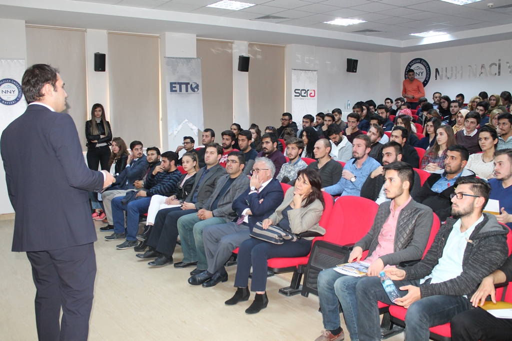 Üniversitemiz Mühendislik Fakültesi Konferans Salonunda, Erciyes Teknopark, ETTO ve SERA Kuluçka Merkezi'nin hizmetleri anlatıldı.