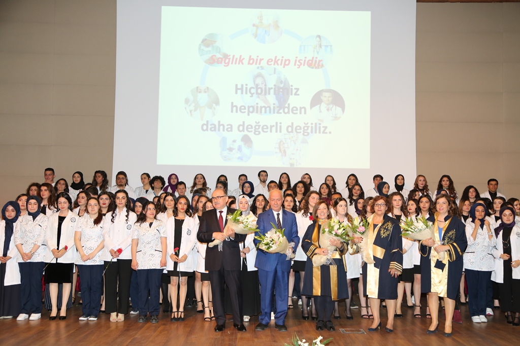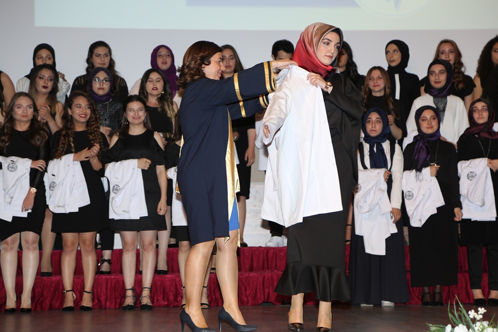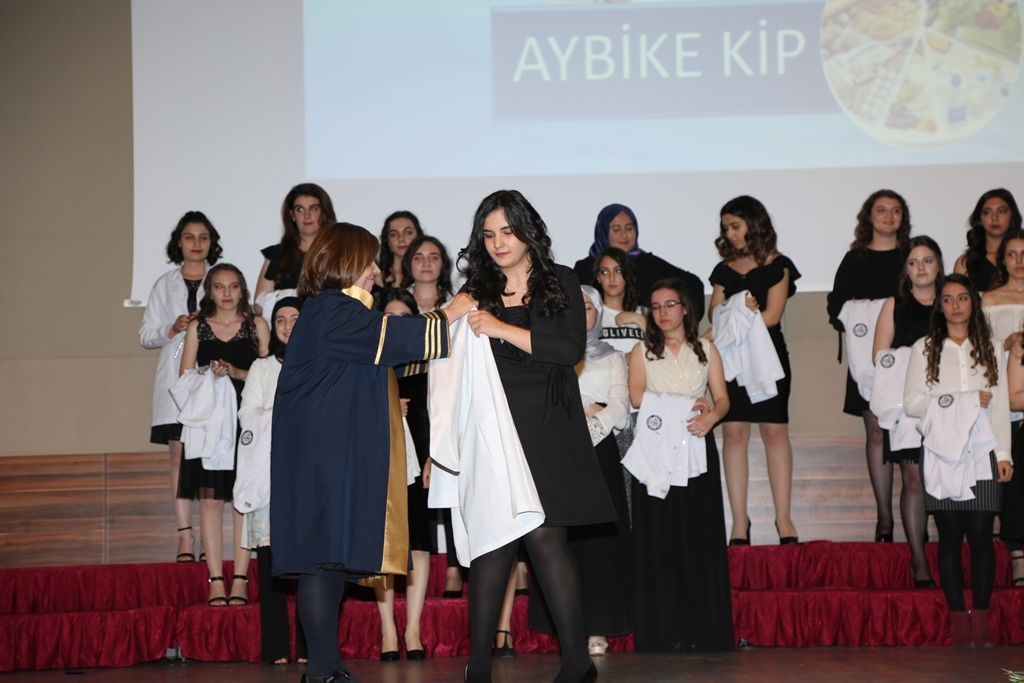 Konuşmalardan sonra kürsüye davet edilen Sağlık Bilimleri Fakültesi Hemşirelik Bölümü öğrencileri, bölüm öğretim üyelerinden ışık alarak mesleklerine giden yolda teorik bilgilerini hayata geçirmek için ilk adımı atarken, Beslenme ve Diyetetik Bölümü ile Fizyoterapi ve Rehabilitasyon Bölümü öğrencilerine beyaz önlükleri bölümlerinde görevli öğretim üyeleri tarafından giydirildi.