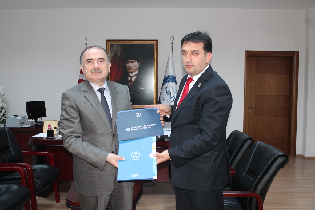 Gençlik Hizmetleri ve Spor İl Müdürü Murat Eskici ise Kayseri’nin üniversiteler şehri olarak anılmasında Nuh Naci Yazgan Üniversitesi’nin büyük etkisi olduğunu belirterek, Üniversiteler Spor Ligi’ne katkılarından dolayı Rektör Kerim Güney’e ÜNİLİG Tanıtım Kitabı takdim etti. Murat Eskici, “Her geçen yıl büyüyerek devam eden Üniversiteler Spor Ligine daha çok katılımın sağlanması, üniversitelerimizin bilgilendirilmesi amacıyla bakanlığımızca ÜNİLİG 2013-2014 sezonu sunumu ve kitapçığı hazırlatılmıştır” dedi.