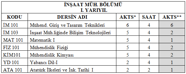 ** Derse devam şartını yerine getiren öğrenciler için AKTS