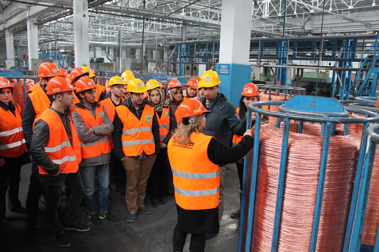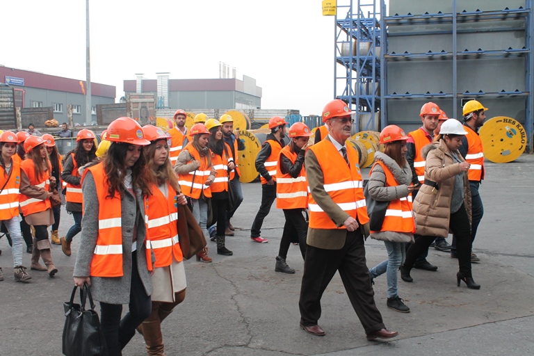 Fabrika girişinde dağıtılan baretleri takan öğrenciler iki guruba ayrılarak, HES Kablo Planlama ve Verimlilik Sorumlusu Gülbahar Geçer ve Üretim Sorumlusu Battal Tokat nezaretinde Enerji Üretim Tesisleri ile Haberleşme ve Fiber Optik Kablo Üretim Tesisleri’ni gezdiler. İşletmenin üretim safhasına tanık olan öğrenciler üretim, pazarlama ve planlama konularında da bilgi sahibi oldular.
