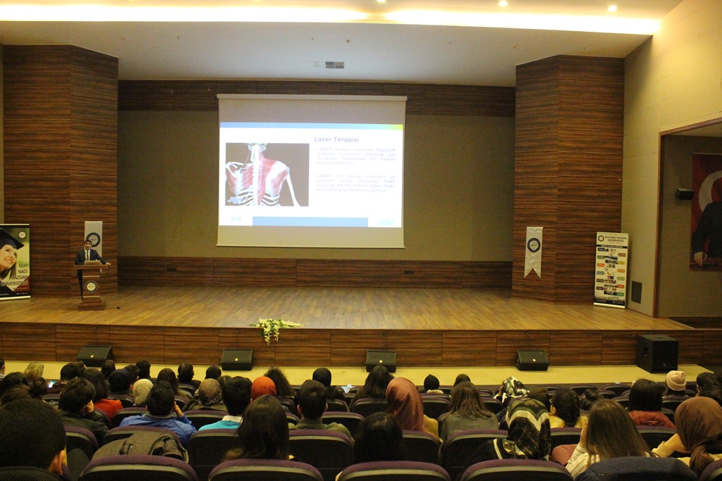 Süleyman Çetinkaya Kültür Merkezinde düzenlenen etkinlikte konuşan Bölüm Başkanı Prof. Dr. Ferhan Soyuer, “Fizyoterapi ve rehabilitasyon malzemelerinde, hasta ve fizyoterapistler açısından sürekli teknolojik, ergonomik yeniliklerin yapılması nedeni ile öğrencilerimizi bu konuda bilgilendirmek amacıyla bu etkinliği düzenledik” dedi. Firma Temsilcisi Fizyoterapist Kerem Gürcan Güllü ise Fizyoterapi ve Rehabilitasyon Bölümü öğrencilerine “Fizyoterapide Güncel Teknolojiler” hakkında bilgiler verdi.