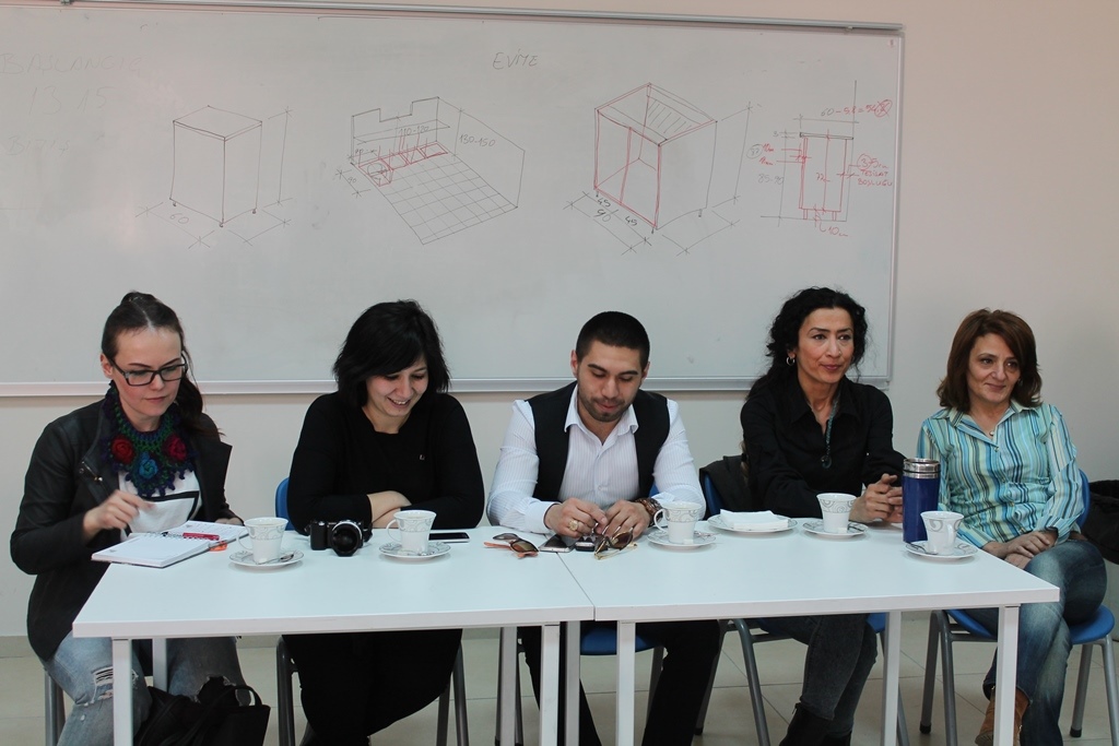 İç Mimarlar Odası Ankara Şube Başkanı ve Temsilcileri, 06 Nisan 2016 tarihinde Üniversitemiz Güzel Sanatlar ve Tasarım Fakültesi’ni ziyaret ederek İç Mimarlık ve Çevre Tasarımı Bölümü öğretim üyeleri ve öğrencilerimizle bir araya geldiler. Dekan Prof. Dr. Ayşe Sağsöz, Bölüm Başkanı Yrd. Doç. Dr. Kenan Başoğlu, Yrd. Doç. Dr. Masume Khanzadeh ve Yrd. Doç. Dr. Mehmet Uğur Kahraman, İç Mimarlar Odası Ankara Şubesi Başkanı M. Tugay Cömert, Işıl Çakır , Hanzade Doğaray ve R. Özge Özdemir Orman’ın katıldığı toplantıda iç mimarların karşılaştıkları sorunlar, eğitim süreci ve yasal yükümlülükler hakkında bilgilendirme yapıp, öğrencilerle fikir alışverişinde bulundular.
