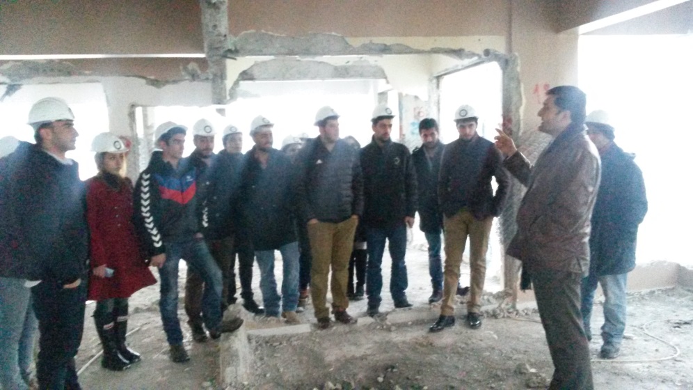 Patlatmalı yıkım tekniği ile yıkılacak yapılar üzerinde uygulanan tüm işlemleri NNYÜ İnşaat Mühendisliği Bölüm Başkanı Yrd.Doç.Dr. Kamuran ARI yerinde öğrencilere anlattı.