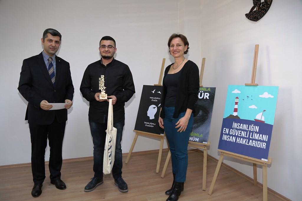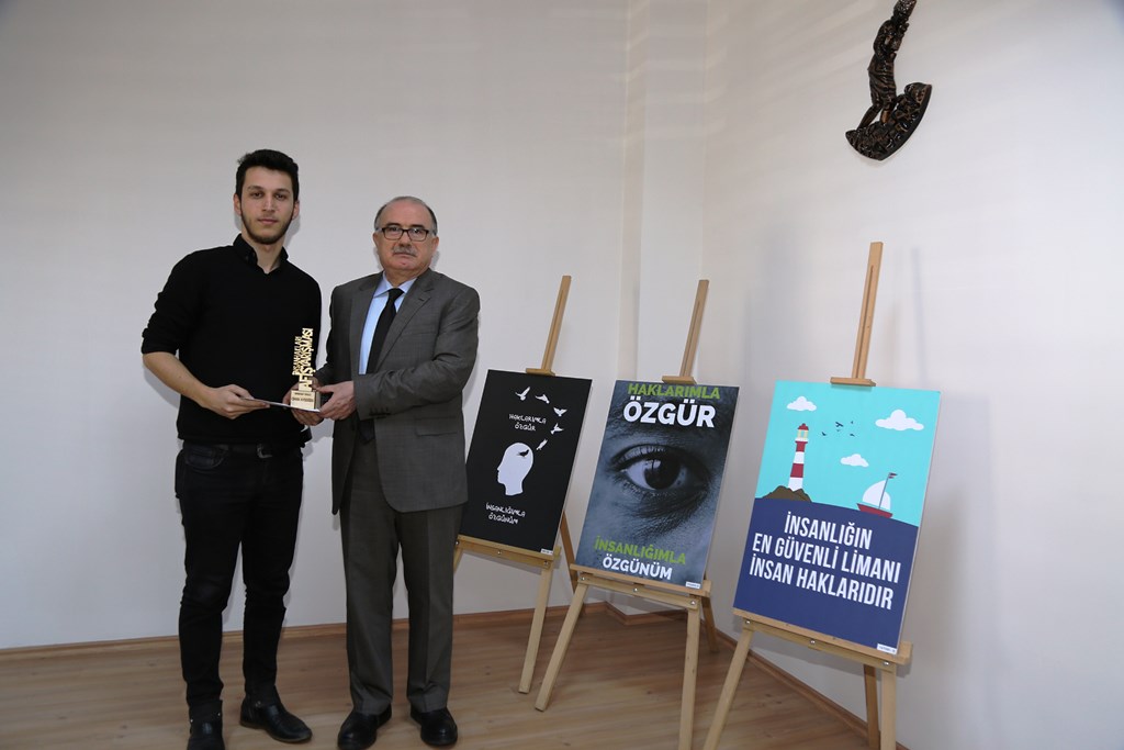 Üniversitemizde düzenlenen İnsan Hakları Slogan ve Afiş Yarışmasında dereceye giren öğrencilere düzenlenen törenle ödülleri verildi.