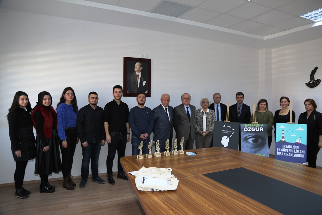 Üniversitemiz Mütevelli Heyet Başkanı Sayın Mustafa Nevzat Özhamurkar ve Rektörümüz Prof. Dr. Sayın Kerim Güney ise İnsan Hakları Slogan ve Afiş Yarışmasına katılan öğrencilere teşekkür etti, dereceye giren öğrencileri tebrik ederek başarılarının devamını diledi.
