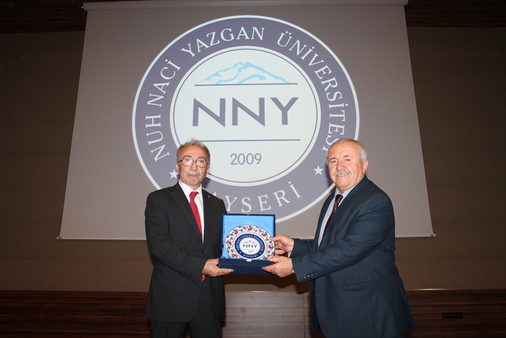 Konuşmasından sonra Prof. Dr. Mustafa Keskin’e, İktisadi ve İdari Bilimler Fakültesi Dekanı Prof. Dr. Ali Kaya tarafından plaket takdim edildi.