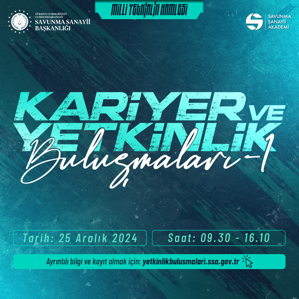T.C. Cumhurbaşkanlığı Savunma Sanayii Başkanlığı Savunma Sanayii Akademi tarafından Millî Yetkinlik Hamlesi kapsamında düzenlenen “Kariyer ve Yetkinlik Buluşmaları” çevrim içi canlı yayın etkinliği ile öğrencilerin kariyer yolculuklarının desteklenmesi amaçlanmaktadır.