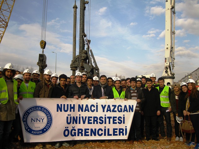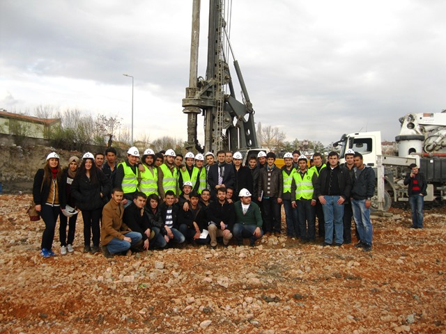 Öğrenciler Yapı Elemanları ve Ölçme Bilgisi dersi kapsamında Yrd.Doç.Dr. Kamuran ARI ve Arş.Gör. Alper AYDEMİR ile birlikte zemin güçlendirme yöntemi fore kazık uygulamasını yerinde görerek, üretimin teknik detaylarını incelemişlerdir. Dersler kapsamında alınan teorik bilgilerin her türlü uygulamasını yerinde takip etme fırsatı bulan öğrenciler, zemin güçlendirmesi hakkında bilgi edinmiştir.