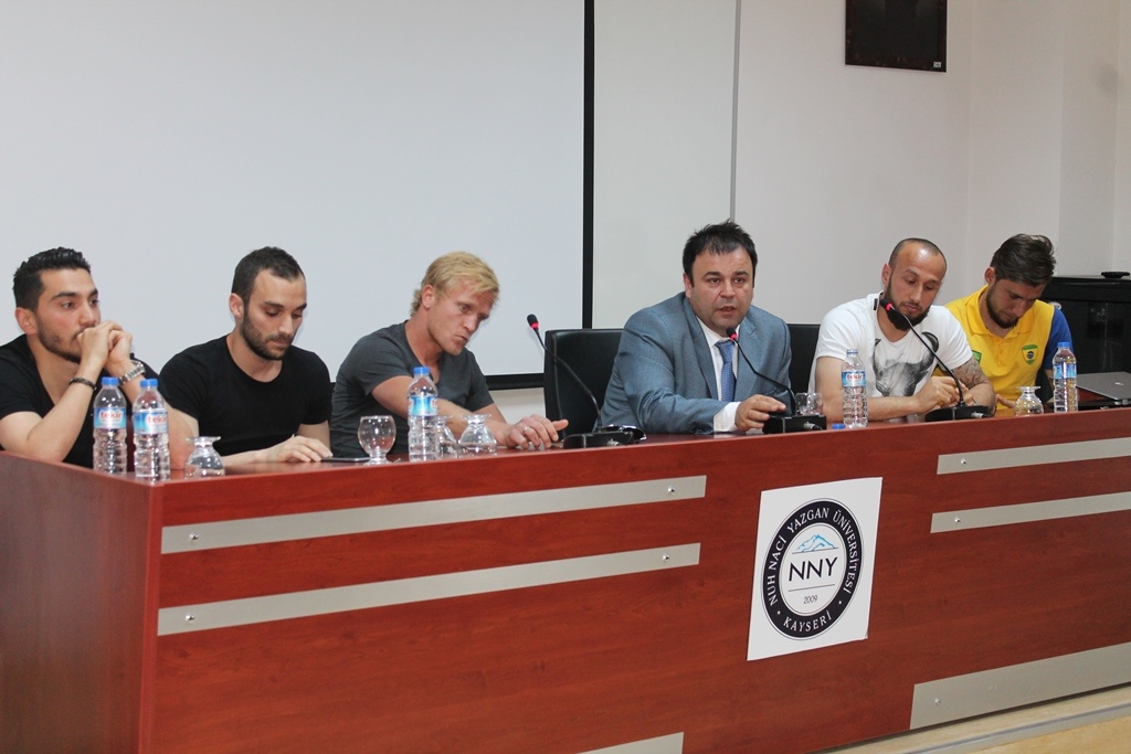 Kayseri Erciyesspor Kulübü Yönetim Kurulu Başkanı Ziya EREN ve futbolcular Üniversitemiz tarafından düzenlenen 4. Bahar Şenliği kapsamında düzenlenen söyleşiye katıldı.