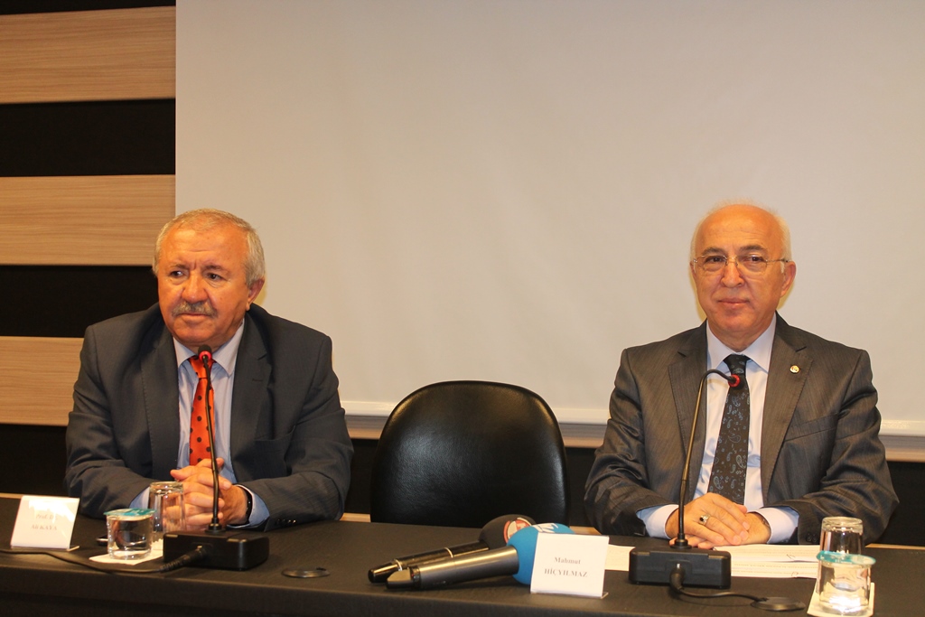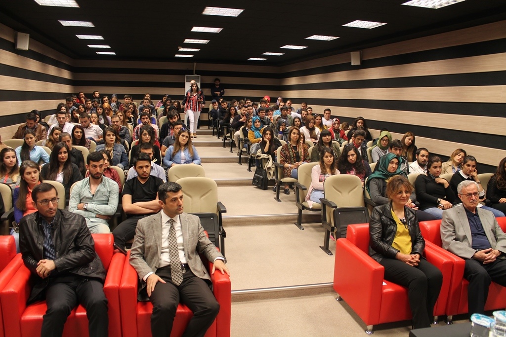 Öğrencilerin sorularını da cevaplandıran Kayseri Ticaret Odası Yönetim Kurulu Başkanı Mahmut Hiçyılmaz’a konferans sonunda İktisat Bölümü Öğretim Üyesi Prof. Dr. Mustafa Saatçi tarafından plaket takdim edildi.