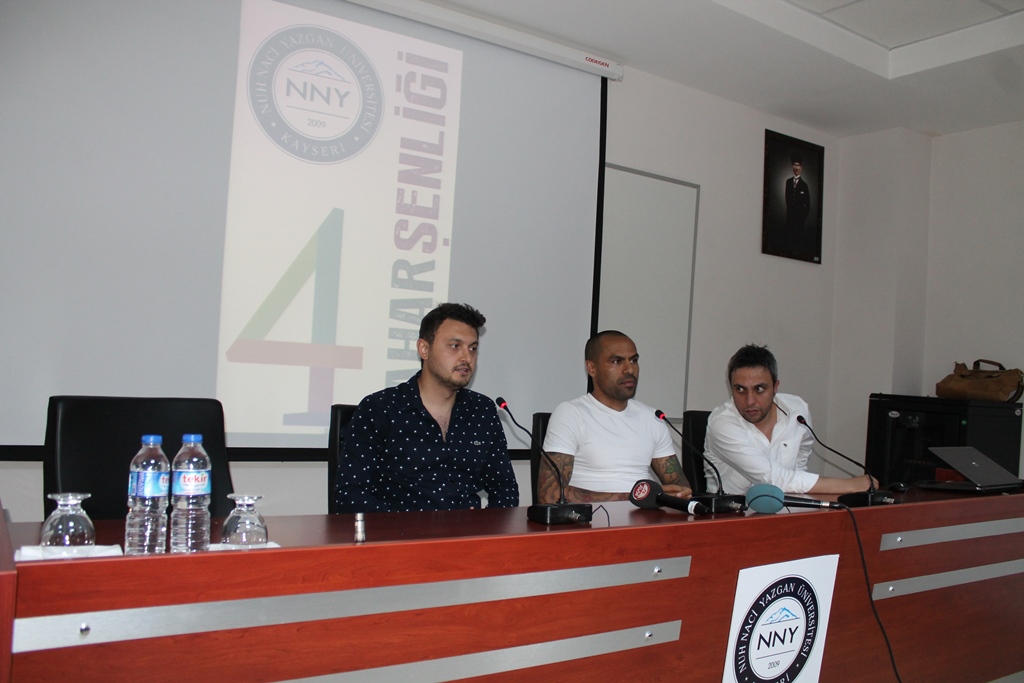 Kayserispor’un tecrübeli oyuncusu Mert Nobre, Üniversitemiz 4. Bahar Şenliği kapsamında düzenlenen söyleşiye katıldı. Öğrencilerin sorularını cevaplandıran Mert Nobre Kayseri’nin tesislerini beğendiğini belirterek “Bu şehre hizmet etmekten memnunum” dedi.