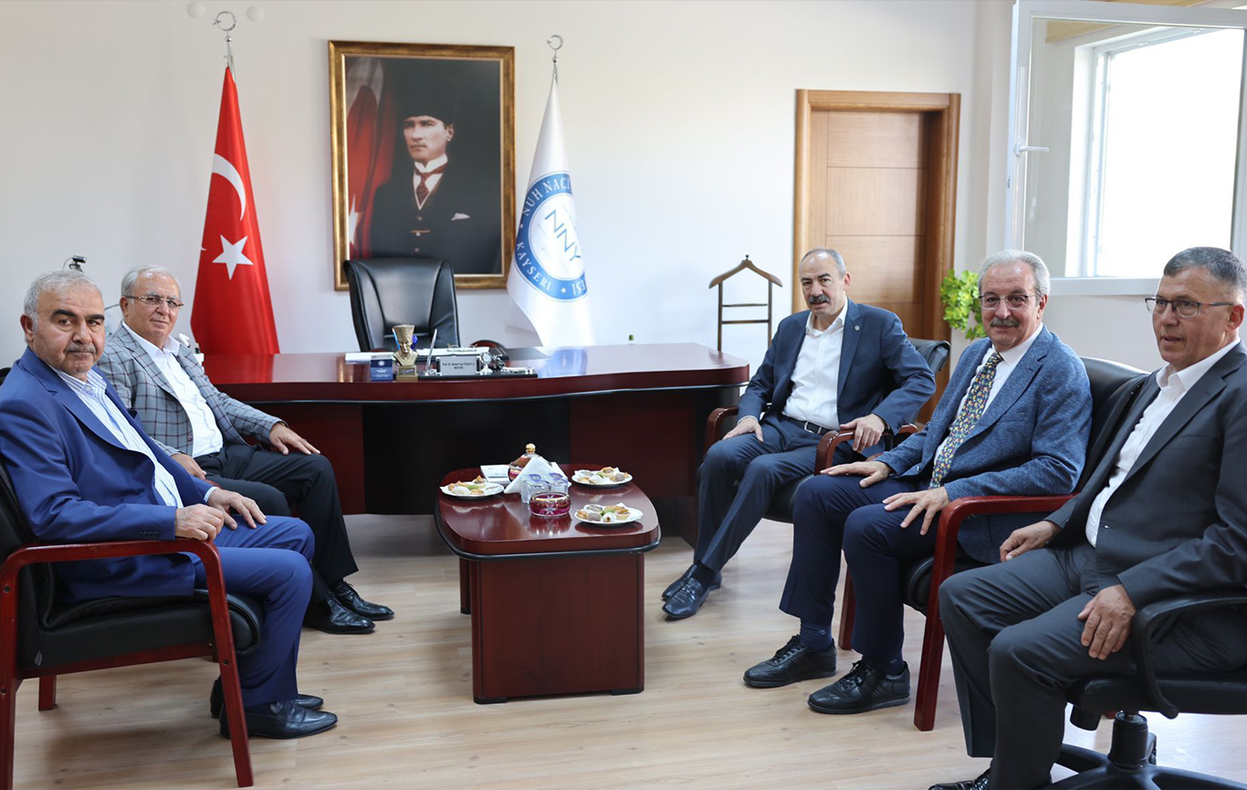 Kayseri Ticaret Odası (KTO) Başkanı Ömer GÜLSOY, Yönetim Kurulu Üyeleri ile birlikte Rektörümüz Prof. Dr. Ahmet Fazıl ÖZSOYLU'yu ziyaret etti. Rektörlük makamında gerçekleştirilen ziyarette ÖZSOYLU, ziyaretten duyduğu memnuniyeti dile getirerek KTO heyetine teşekkür etti.