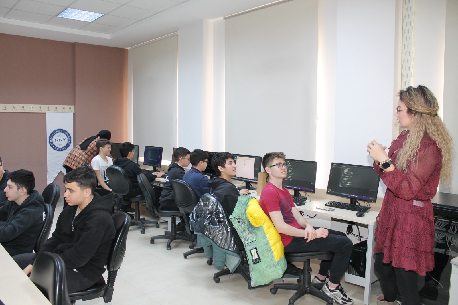 Kayseri’de faaliyet gösteren Bilfen Koleji Fen Lisesi öğrencileri, Matematik Grubu Faaliyetleri kapsamında üniversitemize anlamlı bir ziyaret gerçekleştirdi. Ziyaret süresince öğrenciler, Üniversitemiz Meslek Yüksekokulu Bilgisayar Programcılığı Bölümü akademisyenlerimiz eşliğinde yazılım alanına yönelik uygulamalı çalışmalar yapma fırsatı buldu. Uygulama etkinliğinde; algoritma geliştirme, temel programlama mantığı ve güncel yazılım araçları üzerine verimli çalışmalar gerçekleştirildi.