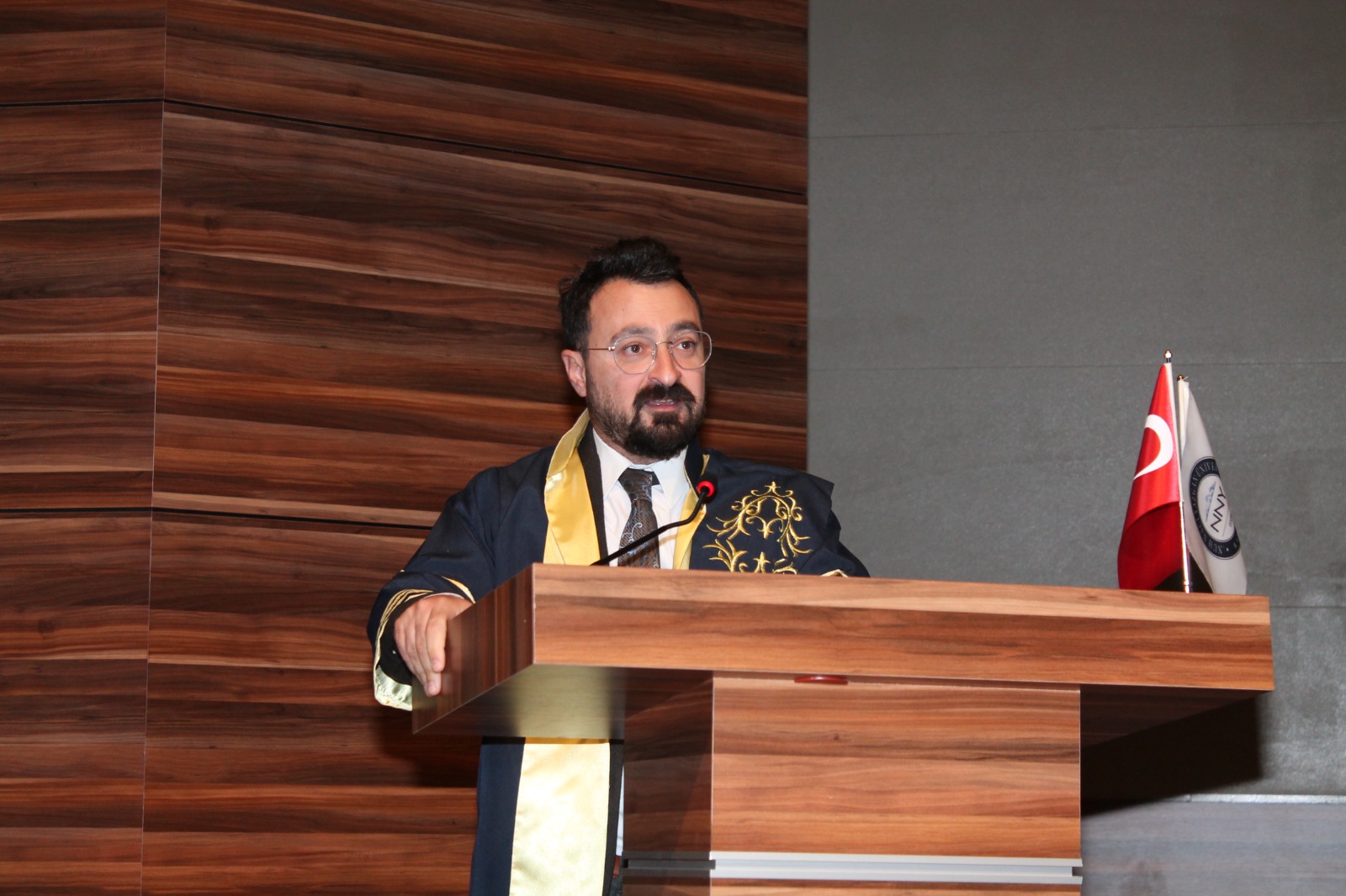 Süleyman Çetinsaya Kültür Merkezi’nde düzenlenen tören saygı duruşu ve İstiklal Marşı'nın okunmasıyla başladı. Törene Rektörümüz Prof. Dr. Ahmet Fazıl ÖZSOYLU, dekanlar, akademisyenler, öğrenciler ve aileleri katıldı.