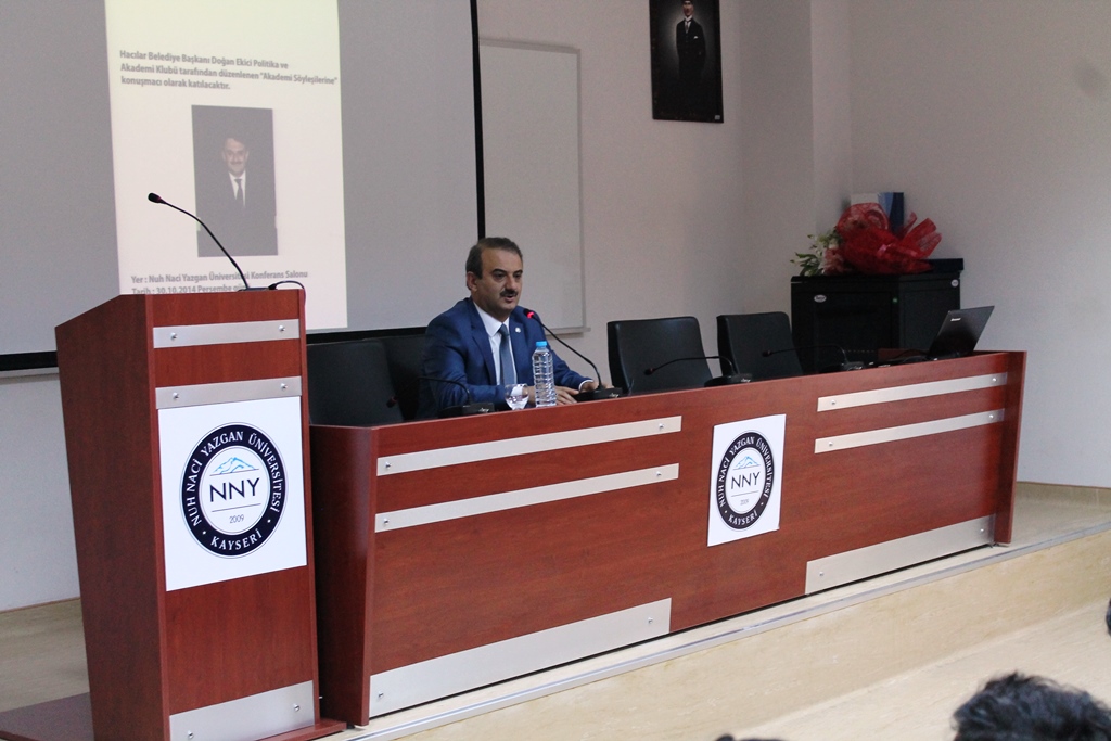Politika ve Akademi Kulübümüz tarafından düzenlenen 'Akademi Söyleşileri" çerçevesinde Hacılar Belediye Başkanı Dr. Doğan Ekici öğrencilerimizle bir araya geldi. Söyleşide kariyer planlaması, siyasette başarı, yerel siyaset konuları ele alındı ve soru cevap kısmının ardından söyleşi tamamlandı.