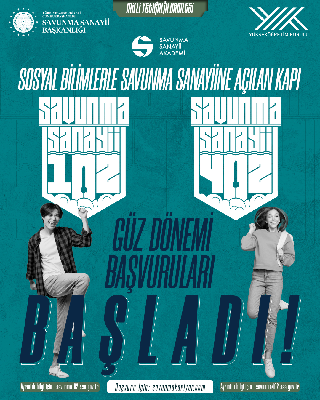 İdari, İktisadi ve/veya Sosyal Bilimler Fakültelerinin 2. Sınıfında Öğrenim Görmekte Olan Öğrenciler ➡️ Savunma Sanayii 102 Eğitim Programı,