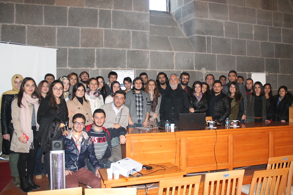 Hunat Hatun Medresesi Konferans Salonu’nda düzenlenen programda Ünlü Mimar Nevzat Sayın, Mimarlık bölümü öğrencilerle bir araya geldi. Mimarlık bölümü öğrencilerine deneyimlerini ve çalışmalarını anlatan Mimar Nevzat Sayın, Mimarlık eğitiminin sadece okulda yapılmaması gerektiğini, sokağa çıkılması gerektiğini söyledi.