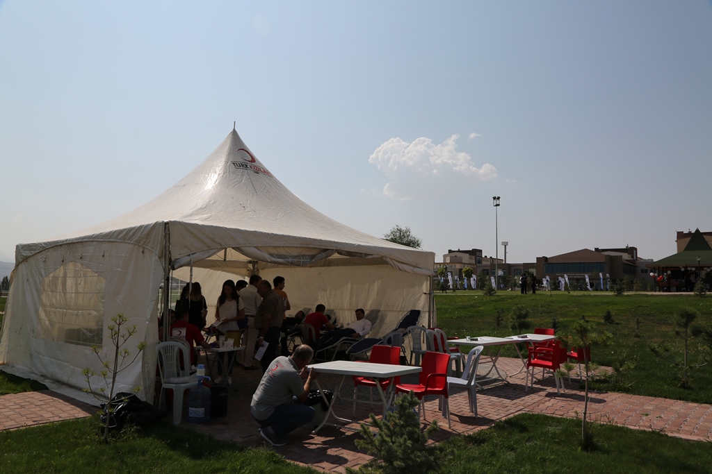 Üniversitemizde 2017-2018 eğitim- öğretim yılı açılışı nedeniyle gerçekleştirilen Tanışma ve Oryantasyon Etkinliği kapsamında, kan bağışı kampanyalarına destek vermek ve toplumda kan bağışı bilincini geliştirmek amacıyla Türk Kızılay’ı Kayseri Şubesi ile birlikte kan bağışı kampanyası düzenlendi. Kampüs alanında kurulan Türk Kızılay’ı çadırında önce kayıt formunu dolduran öğrenciler, öğretim üyeleri ve idari personel daha sonra sırayla kan verdi. İki gün süren kampanyada Türk Kızılay’ına toplam 80 ünite kan bağışında bulunuldu.