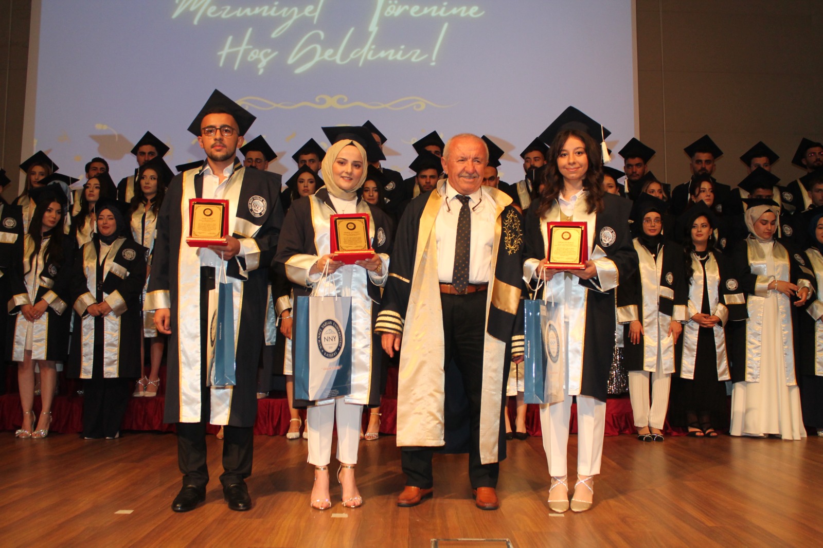 Konuşmalardan sonra dereceye giren öğrencilere plaket ve ödülleri verildi. İİBF 2023-2024 Akademik yılı birincisi, Siyaset Bilimi ve Kamu Yönetimi Bölümü öğrencisi Asya Beyza Şahin’in mezuniyet kütüğüne plaka çakarak bayrak devir teslimi ile devam eden törende fakülte öğretim üyeleri tarafından mezun öğrencilere mezuniyet belgeleri verildi. Mezuniyet töreni öğrencilerin kep atmasıyla sona erdi.
