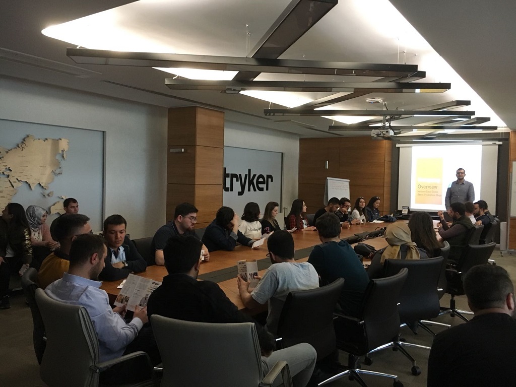 Streyker Medical International Üretim Sorumlusu Mehmet Emin Deniz, fabrikada yapılan sunumda Üniversite öğrencilerine kariyer gelişimlerinde hangi yolları izlemeleri gerektiği, firmalarındaki iş imkanları ve firmalarının kurumsal dönüşümü hakkında bilgiler verdi. Mehmet Emin Deniz, firmaların her düzeydeki bölümlerinde Endüstri Mühendislerine ihtiyaç duyulduğunu belirterek, “Endüstri Mühendisleri firmaların sorunlarını tespit eden, çözen çok önemli insan kaynaklarıdır” diye konuştu. Sunum sonunda fabrikayı gezen Endüstri Mühendisliği Bölümü öğrencileri hastane karyolası üretim sürecini detaylı olarak görme şansı elde ettiler.