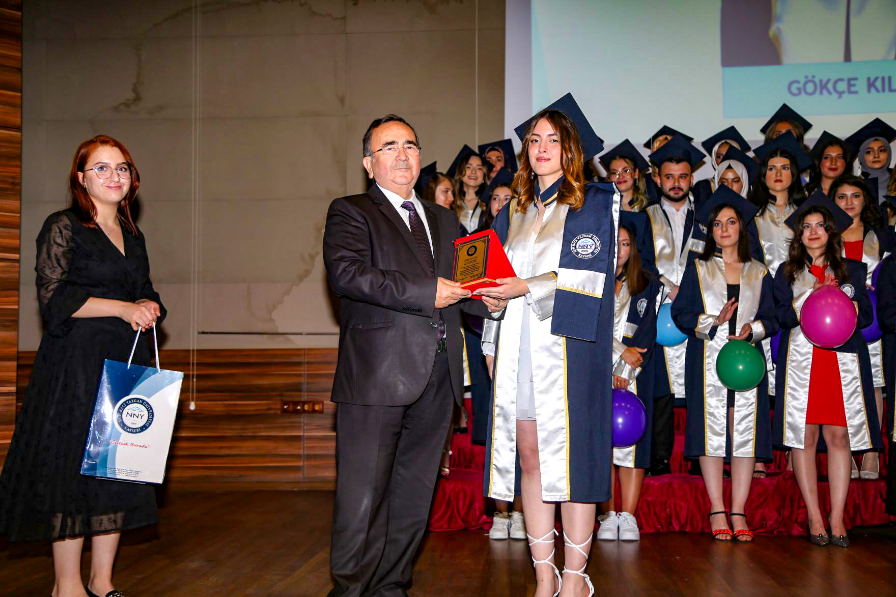 Törende mezun öğrenciler adına konuşan Fen-Edebiyat Fakültesi ve Psikoloji Bölüm öğrencisi Gökçe KILINÇ ise konuşmasında, “Bugün burada konuşuyor olmak benim için onur verici, aynı zamanda da oldukça heyecan verici. Tüm arkadaşlarımın mezuniyetini gururla tebrik ederim ve başarılarının devamını dilerim. Hepimiz çok çalıştık ve işte yolun sonuna geldik. Bazı zamanlar bugünün bir an önce gelmesini, bir an önce mezun olmayı dilemiş olsak da bu kadar hızlı olacağını hayal dahi edemezdik. Ama şimdi buradayız ve o gün geldi. Çok sevdiğimiz bu bölümden mezun olurken deneyimleme fırsatı bulduğumuz muhteşem anılar, çıkarttığımız sayısız hayat dersi, edindiğimiz dostluklar hayatımız boyunca bize mutlulukla eşlik edecek. Bizler Nuh Naci Yazgan Üniversitesi Psikoloji Bölümü mezunları olarak başarılarla dolu bir geçmişe sahip, bilgili bir kuşağız. Bu bilinçle hayata sarılacak, birbirinden güzel yerlere geleceğiz.” diye konuştu.