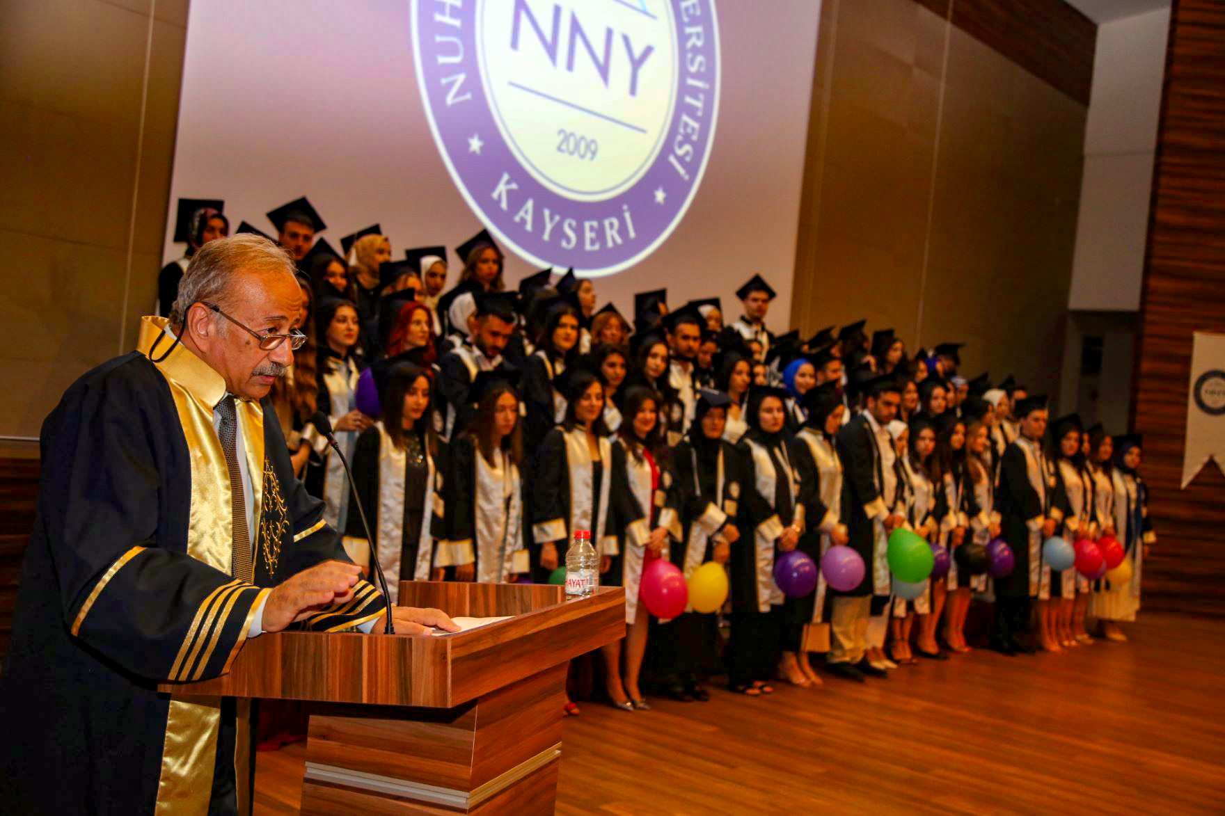 Üniversitemiz Süleyman Çetinsaya Kültür Merkezi’nde düzenlenen mezuniyet törenine, Rektörümiz Prof. Dr. Ahmet Fazıl ÖZSOYLU, Mütevelli Heyeti ve Kayseri Yükseköğrenim ve Yardım Vakfı üyeleri, dekanlar, enstitü müdürleri, bölüm başkanları, öğretim üyeleri, öğrenciler ve aileleri katıldı.