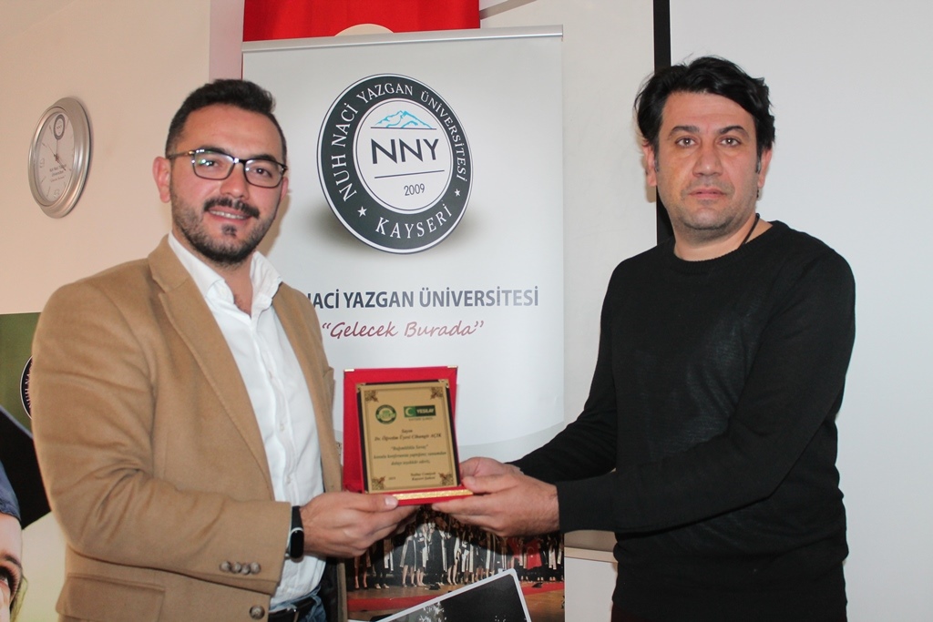 Madde bağımlılığına karşı broşürlerinin dağıtıldığı konferansta ayrıca Dr. Öğr. Üyesi Cihangir Açık’a, Yeşilay Kayseri Şubesi Yönetim Kurulu Üyesi Sefa Koçak tarafından plaket takdim edildi.